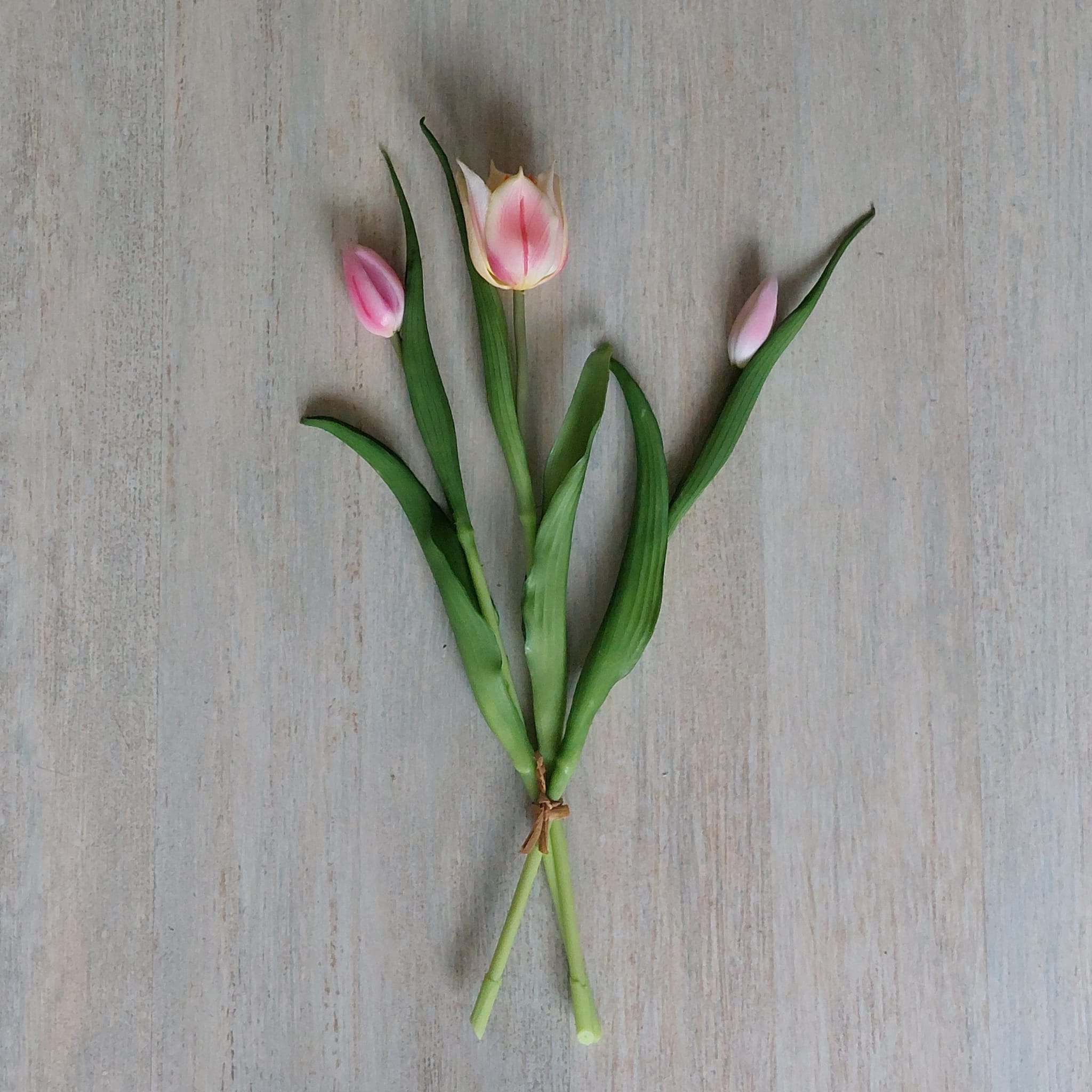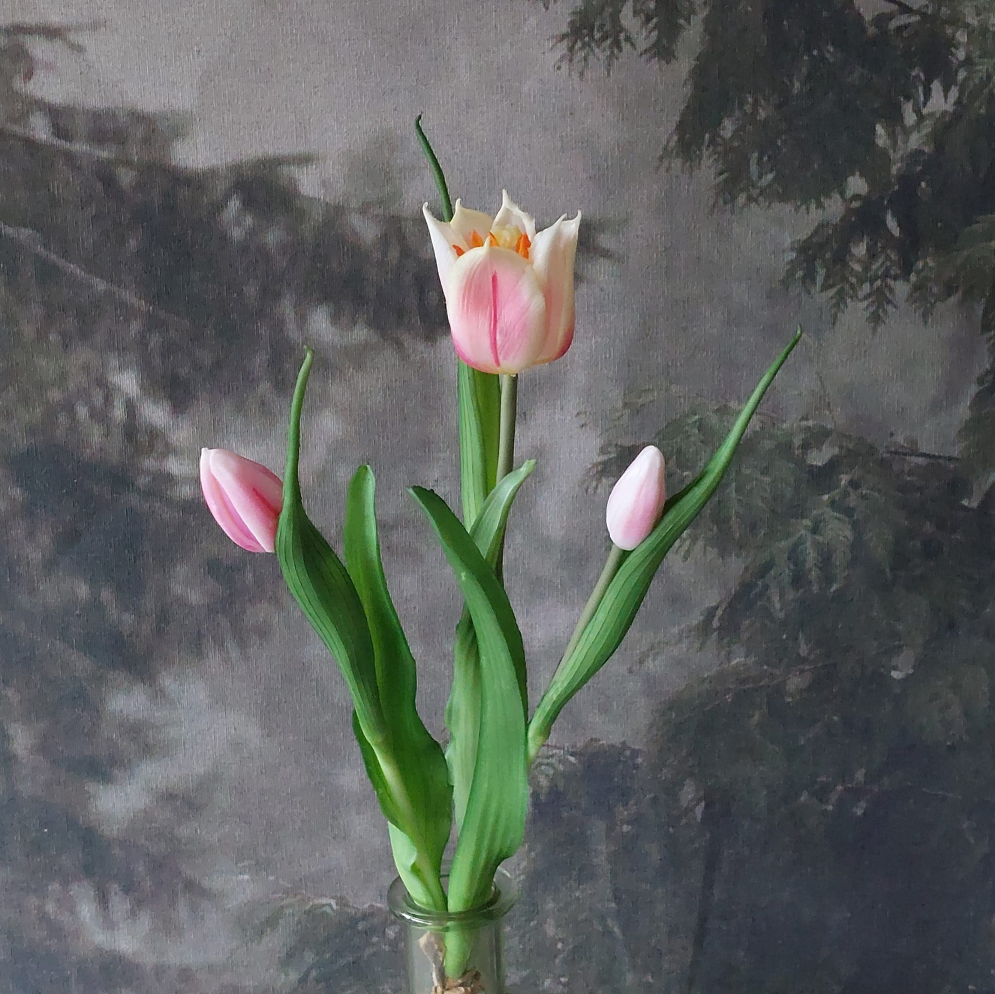Bosje van drie tulpen, waarvan twee gesloten en één open knop